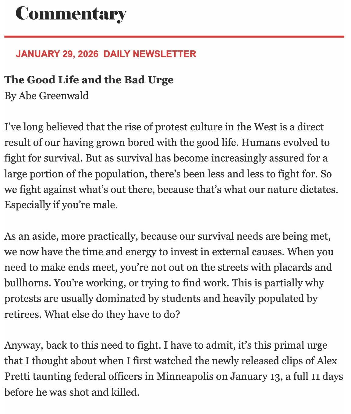 Excellent meme potpourri. The Greenwald snippet is a welcome and insightful take. I think a lot more is going on besides "not enough to do." Even a shitty stew doesn't magically appear on the stove, ya gotta put in some effort for a while. Conversely one can argue that the Civil Rights business and all those incoherent marches against Vietnam, now 50-70 years back, hit their stride only when the pertinent demographic groups attained a stage of unprecedented comfort and arrogance.
